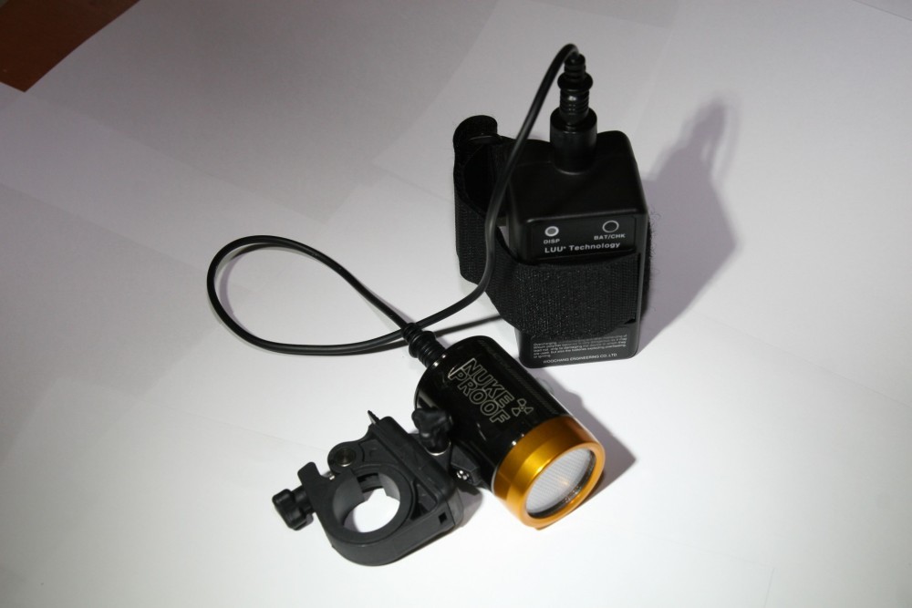 The first thing that struck us about this light was the packaging! We know you can’t judge a book by its cover, but it undoubtedly had us ‘oooh-ing’ over it! A circular, brushed-silver tin and when you lift the lid there’s a bright yellow and black nuclear reactor hazard sign staring back at you before you uncover the carefully padded Nuke Proof light beneath. Obviously, we realise it doesn’t have any effect on the standard of the light itself, other than ensuring it gets to you in pristine condition, but it certainly gives you the impression of a well made and carefully thought out product.