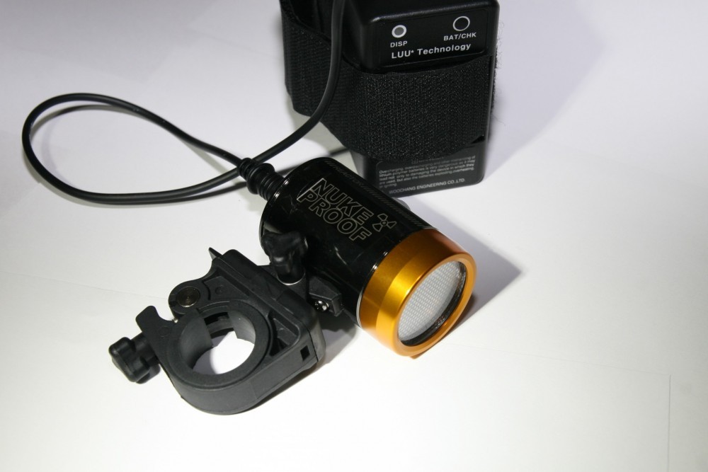 The Nuke Proof is a good looking number; sleek and stylish, with the on/off button situated on the top which glows a soft blue when turned on making it super easy to find if you want to change a setting or turn it off. There are 3 main settings: low, medium and full. You could probably ride at night using the medium setting if you wanted to prolong the battery life for a longer ride, but the full setting is the one to use to get the full Nuke Proof experience. Even on full the battery life is just under 4 hours, which is very impressive.