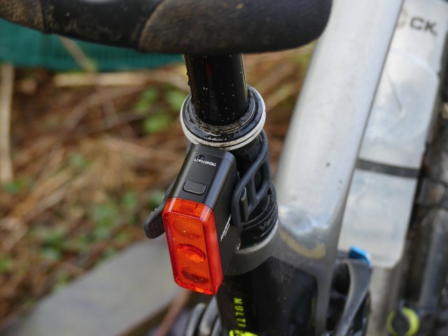 Given the flashing and bright nature of the light, I didn't find this downward angle to be much of an issue, but a wedge-shaped spacer would have helped to move the light up a little. In terms of visibility, it is exceptionally powerful and certainly irritating to any rider behind you on the road. Drivers will certainly know you are there, and even with a layer of mud, it's still visible although wiping it every now and then on a winter ride is recommended.