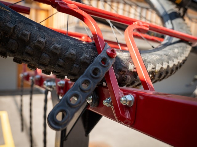 To hold the bikes in place you use UV resistant rubber straps. As they only touch your tires/rims there is zero change of scratches. Great news with bike prices of 5k or more being the norm these days. For those that don’t need to transport a huge amount of bikes, there are options for 3,4,5 and 6 bikes available too, using the same hydraulics system.