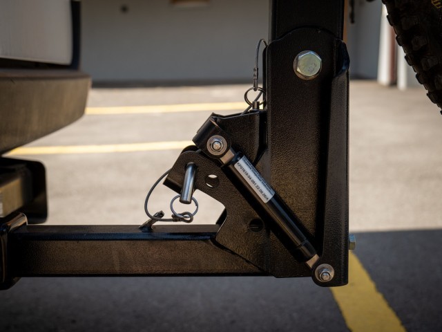 Can you open the rear doors? Yes. You can completely lower the rack by removing a pin. In this ‘camp mode’ you can use it as a bike rack too.