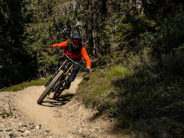 After the initial setup, we took the machine to the DH tracks of Verbier. Anyone that’s ever been there can tell you there is a huge variety of trails available from flat out high speed to rocky rooty technical. First thing we noticed was the high cockpit. We tried lowering it as much as possible, and after a few runs we started getting used to it. This position did turn into the bike's favor when things got steep. The higher position really gave you the confidence to just charge down, without the fear of going over the bars.