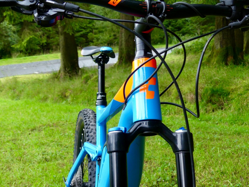 Finishing kit and components are mostly from the Cube range, including bars, stem, grips etc. The major niggle for me is that it rocks up with narrow 740mm bars and an enormous stem, which all looks rather dated.