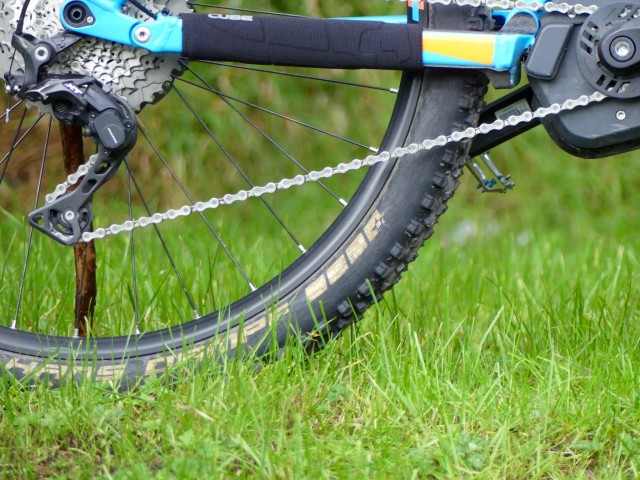 Kudos to Cube for putting durable tyres on, and the Hans Dampfs are always predictable and reliable, especially in the Super gravity format (reinforced sidewalls). These are attached to some wheels built from a mix of XT hubs and some Cube own brand rims.Also, we see Cube's own branded 150mm drop post; it’s functional, has a pretty good lever and helps keep the overall cost down.