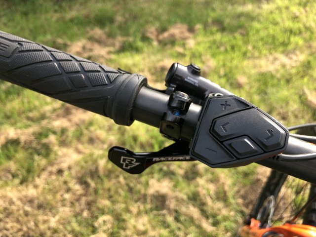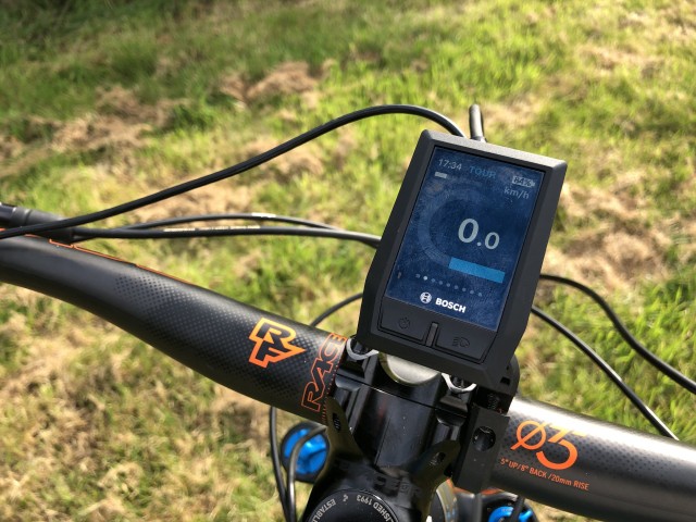 We were pleased to see a set of RaceFace carbon handlebars fitted as stock with the Kiox system to run all the electrics mounted front and centre. Braking duties are handled by Shimano with their XT 4 piston set up. There is more Shimano XT to be found at the drive train, which boasts a 12-speed range and an e*thirteen crank.