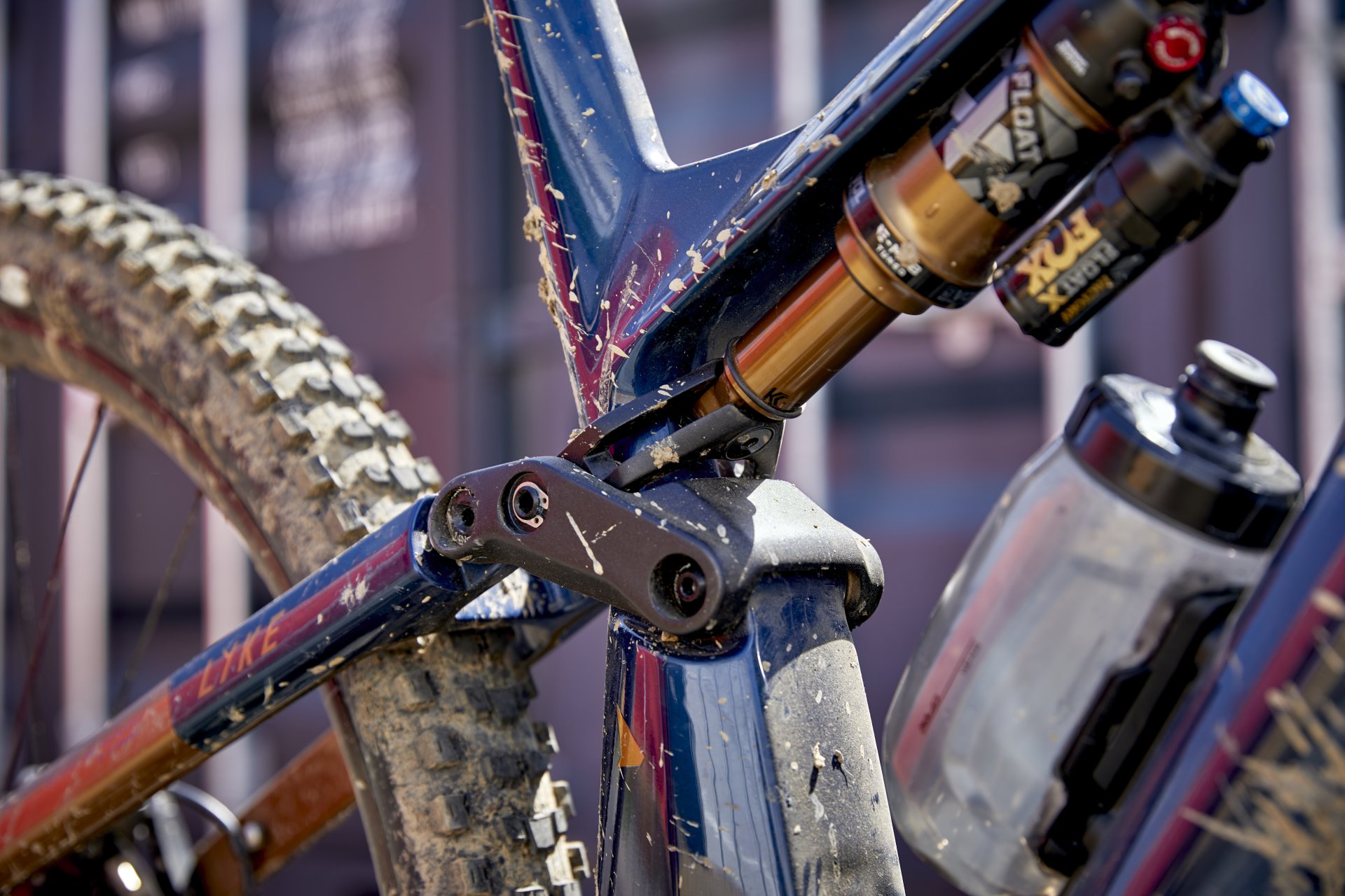 When we look at the frame, there is a full carbon frame with 140mm of travel and a lot of cool technology. The wishbone style rocker helps isolate any sideways flex towards the rear damper, this greatly improves the way the suspension works out on the trail and increases bearing and bushing life in general.
