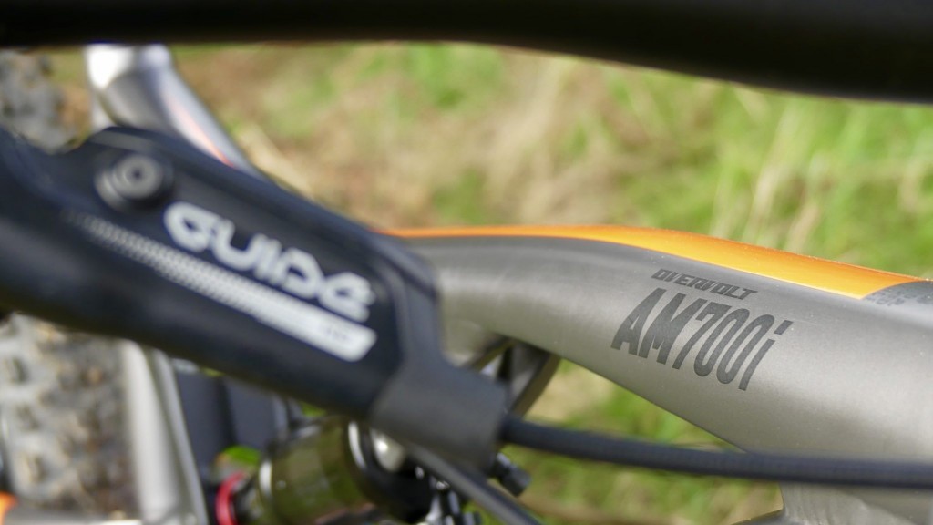Here we have the Overvolt AM 700I, which uses the Bosch motor, Shimano motor models won't be available until next year. Within the Bosch range, there are 5 'AM' models and 5 'XC' models as well as a bunch of hardtails making just over 20 bikes. The funky low-slung battery frame is still available, but what is most exciting is the new Powertube, which allows the battery to be better incorporated into the frame, improving looks and reducing the rattle.