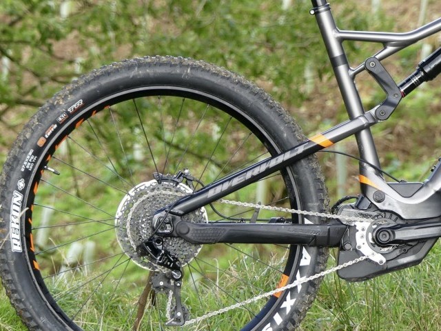 Based around 650b plus wheels, the Overvolt has embraced e-bike specific technology in the components. SRAM's GXe is designed to only allow one shift at a time to prevent cross loading of the chain and reducing the risk of breakages under power. Braking is again e-bike specific with the SRAM Guide RE brakes, which use a downhill calliper with the Guide lever to create a huge stopping power.