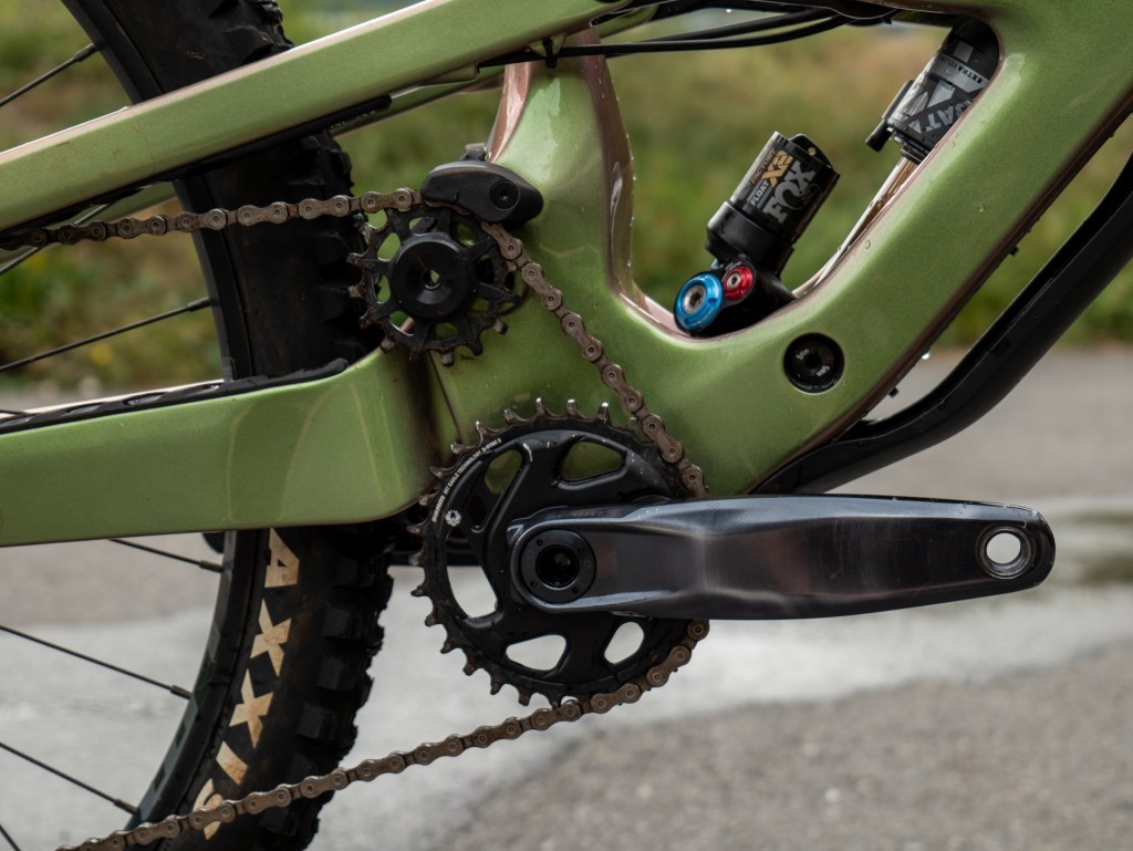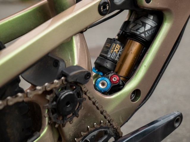 By going with a 4 bar linkage Cannondale departs from the Jekyll’s past, which used to have a single pivot design. The axle path is moving rearward initially, before moving forward again. This enables the rear wheel to move out of the way of any obstacle, keeping momentum when the trail gets rough. Choosing a high pivot design combined with an idler wheel on the frame, they eliminated the pedal forces in the beginning of the shock stroke, creating an ultimately smooth feeling over small bumps while eliminating pedal kickback. To keep the chain where it’s meant to be, they included a small chain guide on the pulley which is made from steel to ensure a long lifespan. They even made a great animation to explain how it all works, check it out.