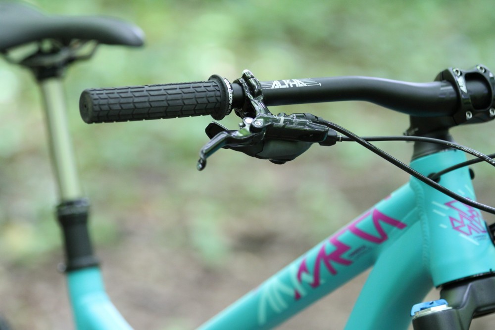 The very welcome dropper seatpost is from KindShock, and is the Integra model from their LEV family of offerings. It’s an air/oil operating system that gives 125mm of travel and is controlled with a neat press-lever at the handlebars. Internal routing, as with all cables on the Meta Girly, keeps things tidy. The seatpost had a little habit of ‘sticking’ occasionally when it had been ridden fully down for a bit and then was required to ‘stand to attention’. A gentle nudge of the seat sorted it out, but it’s worth remembering that dropper seatposts do shouldn’t be overlooked when maintaining and servicing your bike.