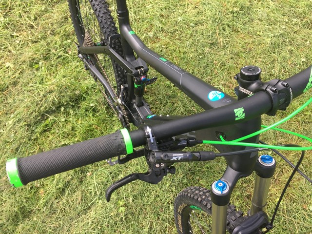 The frame is a neat looking chassis using their Advanced Twin Mold Technology which layers up the carbon to keep a good balance between weight and strength. The four bar linkage system remains as a proven piece in the Stereo jigsaw and holds the Fox Float shock in a position which makes switching between climb, trail and descend easy while on the move.