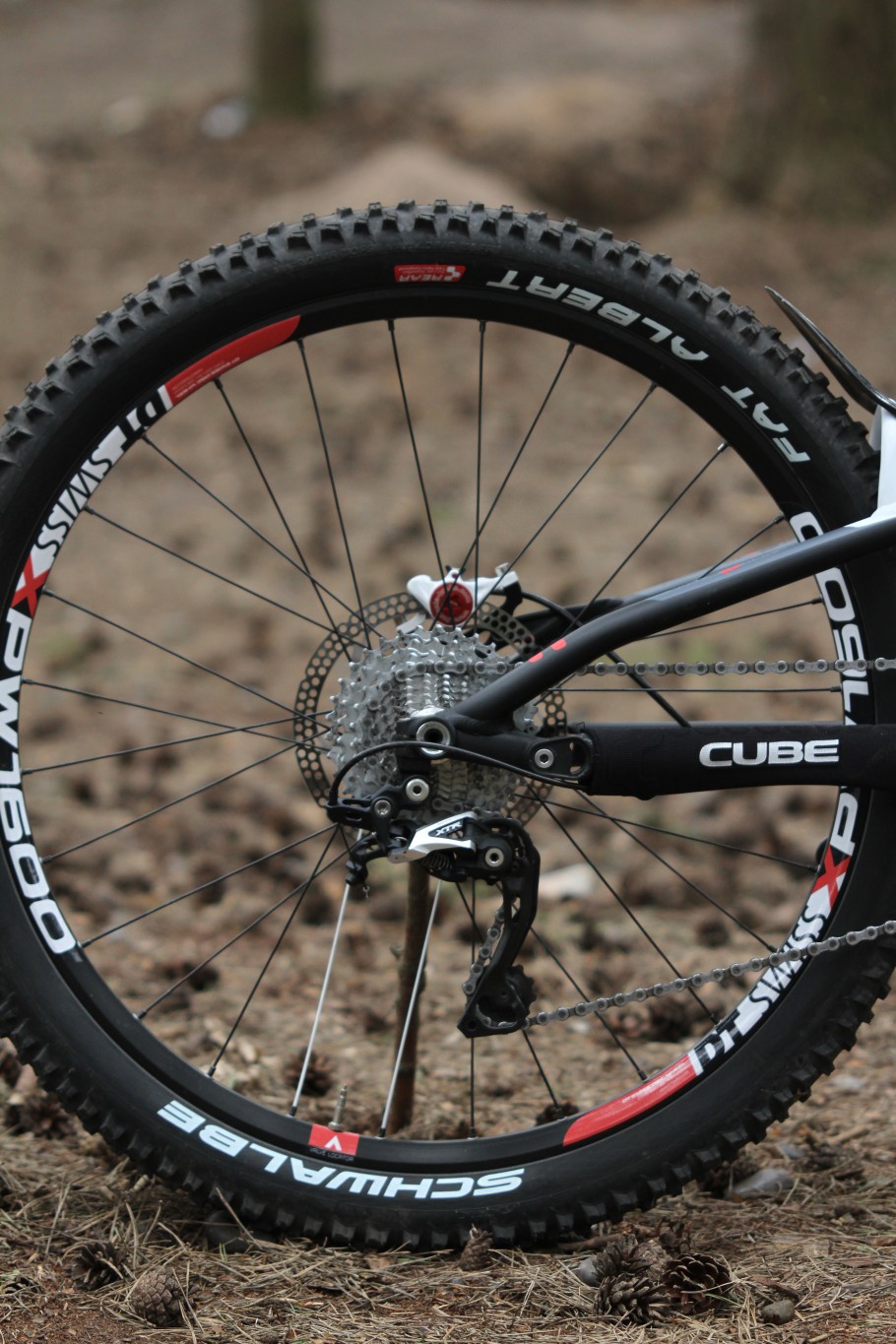 Schwalbe Fat Albert tyres are a middle of the road performer and do not compliment this bike. Slightly draggy on fast trails and not the best grip when riding hard we would like to see this bike specced with a set of fast large volume treads.