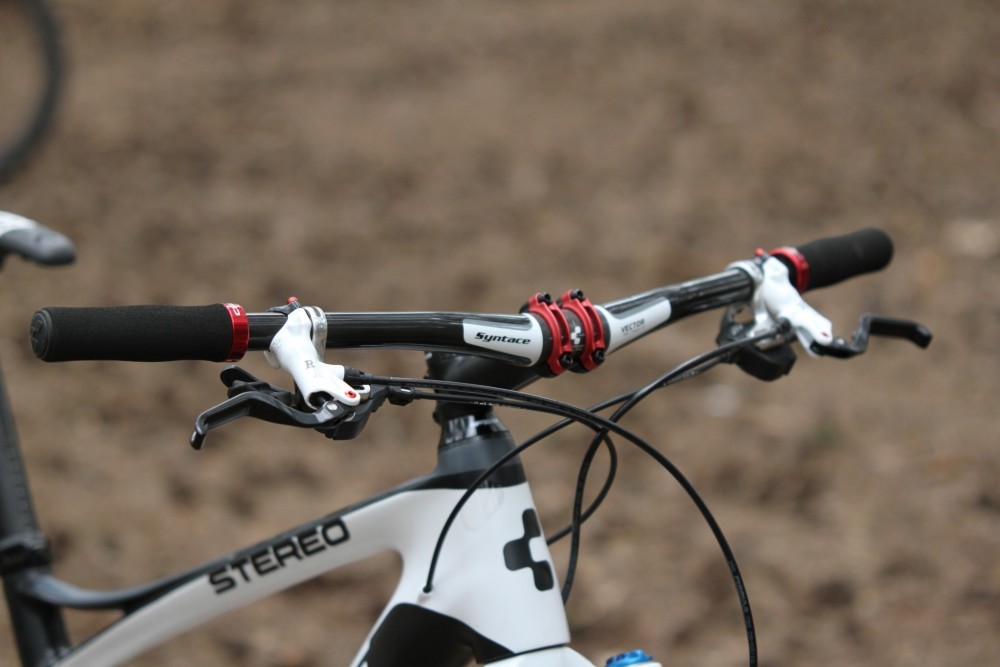 Syntace supply the stem, carbon bars and that huge white carbon seat post. There is a Fizik Gobi XM to perch on.
