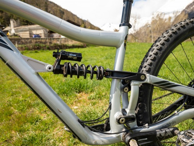 Checking the frame details you’ll get a hydroformed alloy frame, with CNC machined linkages. The rear end takes boost sized hubs, 31.6mm seat post and we see the return of a threaded bottom bracket. There is no mention on the bearing specifications, but it does come with a removable ISCG05 mount. Frame finish is clean although the linkage itself looks a little agricultural to me. The frame is available in 4 sizes and comes with a 7 year warranty.