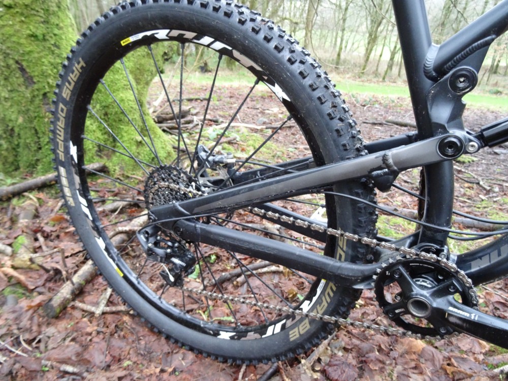 Chainstays are longer than current fashion dictates at 450mm and with a long wheelbase, and sizing up to XL, this is a big machine. As a pre-production model, my test bike had a slightly altered specification, but Pike forks and a Monarch rear shock handle the bounce and a SRAM drivetrain keeps it simple out back. Wheels will be SRAM versions but I had a set of Mavic Crossmax XLs and the ever-reliable and robust Schwalbe Super Gravity tyres. With these angles and kit spec, this is a far cry from the lycra clad beginnings of the 29er.