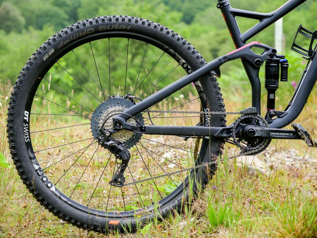It’s one thing having the kit but making sure the numbers all stack up is just as important, and the Swoop gets it right. With a slack head angle varying between 64.8˚ and 65.8˚ mated to a reasonably steep seat angle of between 75.8˚ and 76.8˚, this offers up a stable, confidence-inspiring descender that belies its travel and intended use when pointing the bike uphill. The 19” model as tested came in with a 476mm reach which for me (being 5’11”) felt slap bang on the money when it came to sizing. I can rarely swing a leg over a bike and it feels ‘right’ straight away, the Swoop was one of those rare bikes!