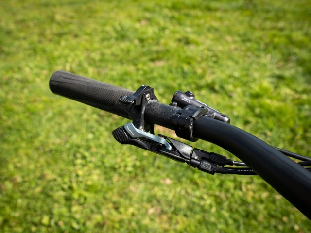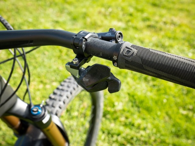 When looking at the frame, you can notice the clean lines and well placed protective rubber to prevent chain slap and rocks chipping into the carbon. The Ransom comes with SCOTTS own TwinLoc remote lockout system that lets you control both the forks and the rear shocks from the handlebar, optimising climbing geometry and dampening. It’s not just a simple lockout, but it also alters the bb height with 20mm and steepens the angles by 1.5 degrees. It does make the left side of the handlebars look a bit busy, but once you get used to it, it works like a charm. You can read all about it right here.