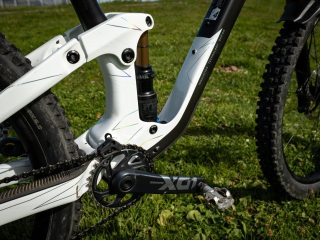 In the rough stuff, I do wish for a little more plushness on the suspension side. It feels firm and racy, which is great if you’re a racer. But not so if you’re looking for comfort. Also when your speed picks up the playfulness turns into nervousness and you automatically hold back a little. It’s the complete opposite of a Transition Spire for example, which is more a rocketship that screams “Go Faster” at you all the time, but refuses to wheelie.