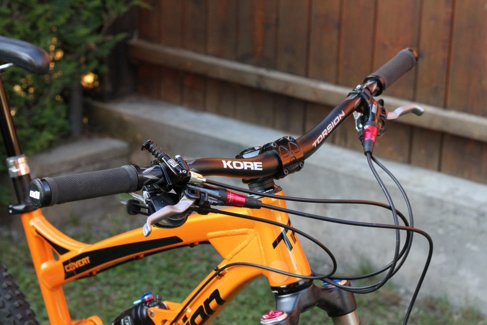 The components on this years model are world class, when we first rode it we couldn’t think of anything we would actually change for normal riding conditions in the UK. In the end we fitted a chain guide and put some beefier wheels and tyres on for the Mega but that was it. Suspension is taken care of by Fox, an RP23 out back and a 160mm Float R up front, both very capable bits of kit. Brakes are Avid Elixir CR with a 203mm up front and a 160mm at the back end. It’s an odd combo and we quickly put a 203mm on the rear for the Alps. In the UK though the 160mm disc was fine and we had no issues whatsoever. The drivetrain is Sram X9 for the shifters and derailleur’s with a Truvativ AKA 2.1AM crankset completing the set up. A Rock Shox Reverb seatpost is a welcome addition over last years model. Not many bikes are running these as standard kit yet so it was a nice surprise to see it on the bike. There is a Kore Torsion Trail 740x35mm riser bar on the front coupled with a 60mm Truvativ AKA stem. Two Maxxis Minion tyres handle the rubber side of things. It’s not often a bike arrives where we are happy with pretty much everything, but with the Covert this was certainly the case.