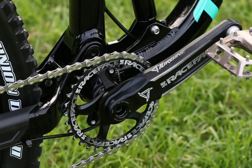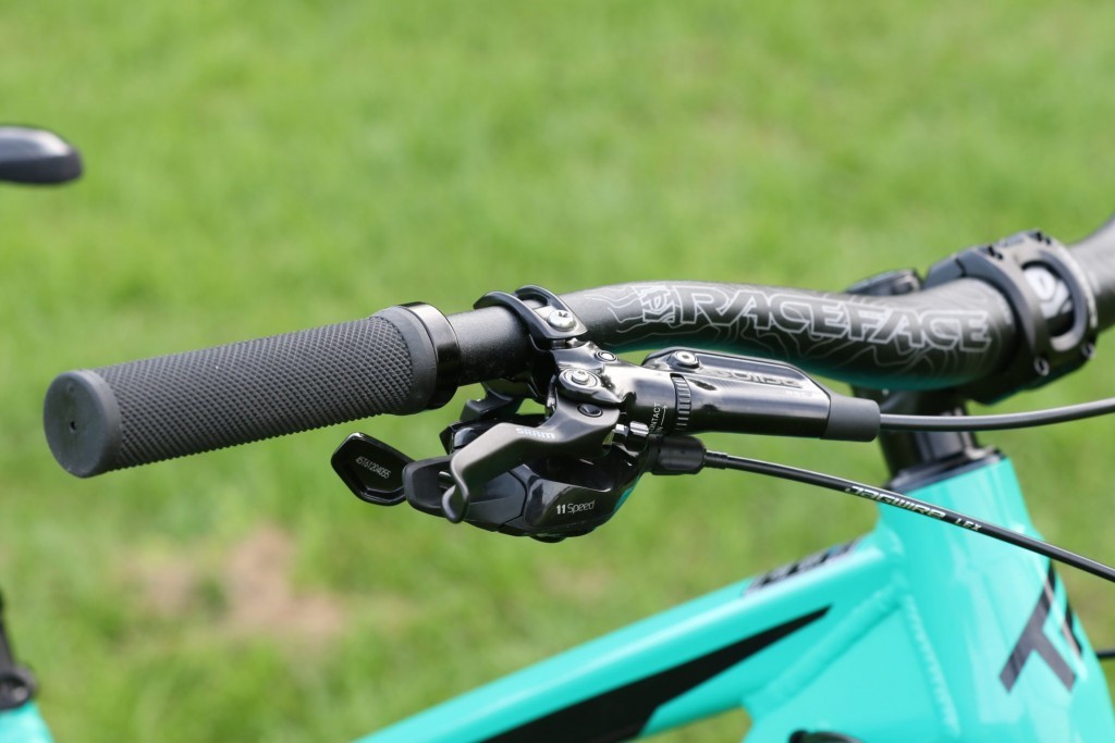 It’s the Complete Kit 2 build that we have on test, which is the penultimate spec to the top one kitted out with Eagle bling. It’s a build that lacks nothing and is impressive from the outset: RockShox Super Deluxe RC3 rear, RockShox Lyrik RCT3 front, the acclaimed Reverb Stealth dropper, plenty of RaceFace componentry, Stan’s Flow MK3 wheels shod with beefy Maxxis Minions, and some top spec gearing and braking in the form of SRAM X1 and Guide RSC respectively.