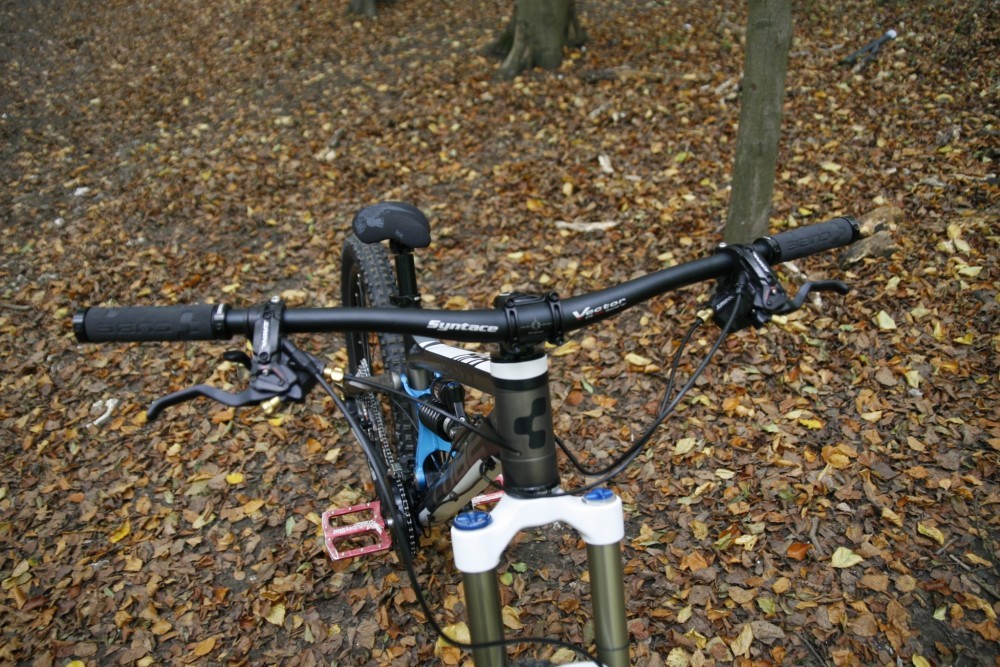 Syntace provide a pair of 780mm wide handlebars with a matching stem. Wheels are Sun Ringle EQ31 rims laced to Jumping Flea hubs with Schwalbe Muddy Mary on the front and and Big Betty tyres on the back. Finishing things off is a SDG Micro seatpost and Patriot saddle.