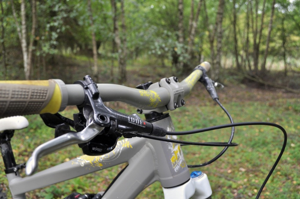 Gearing is taken care of with by a SRAM X9 10 speed derailleur and the chain is kept in place by an E-13 LG 1 chainguide. Incredibly the whole build weighs in at just over 17 kilos, making it so easy to throw the bike around. It’s that agility that really struck us and made it such a fun bike to ride.