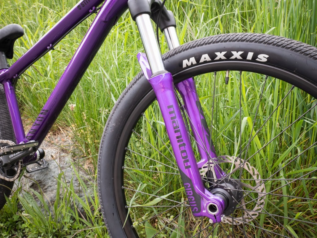 Once on the move, the Stitch is really responsive and agile. The alloy frame is stiff which is great for cornering and gives a nice pop off jumps, but not very forgiving on the landings.The Manitou forks work well, although they lack adjustability and a lockout option. Keep that in mind if you are a non average rider (lighter or heavier). One downside of the 20mm front axle setup is that it makes getting a fork upgrade over time harder to find, as most higher end DJ forks come with a 15mm TA. You can’t get an adapter for your front hub either, so changing the forks means also changing your wheelset (or front wheel at least) too. So if you’re after more adjustable forks, have a look at their more expensive Stitched 360 PRO model.