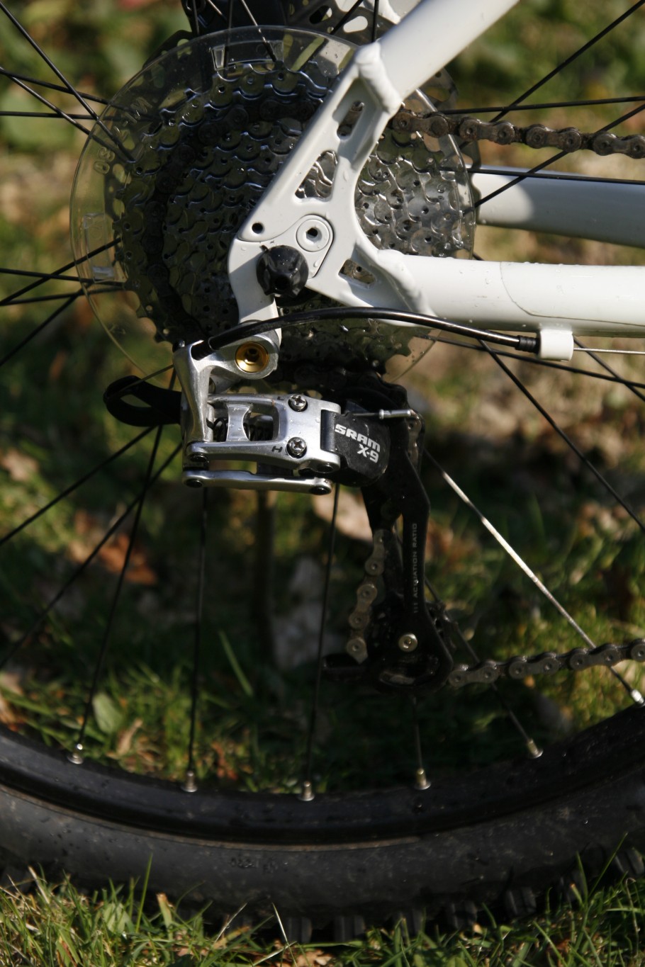 Transmission is Sram, shifters are X-7, front mech X-5 and the rear mech is an excellent X-9. Crankset set is a Truvativ Firex triple. Hayes Stroker Trail brakes are basic but reliable.