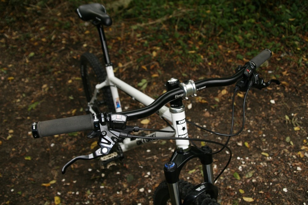 Shifting is taken care of by Shimano Deore with a FSA crankset doing the business up front. Braking is also down to dependable Shimano Deore. On-One Fleegle bars are nothing short of odd but they do feel good once you get used to them and they are truly wide. In-house kit rounds out the stem, seat post and grips. Wheels are by On-One as well and excellent Kenda Nevegals finish things off. The overall build is reasonably light weighing in at 30.4lbs. Spend some more though and that weight will come down.