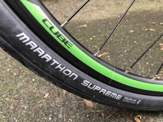 Braking comes from the excellent Shimano BR MT200 Hydraulic Discs, Cube provides the bar and stem, and a comfy Selle Royal Prestige offers a solid perch. The seat post incorporates a built in super low profile light, which is a clever touch with a USB charging port. Cube’s own rims are shod with Schwalbe Marathon Supreme Kevlar tyres, and the whole affair is a murdered out black, save for a few flashes of green.