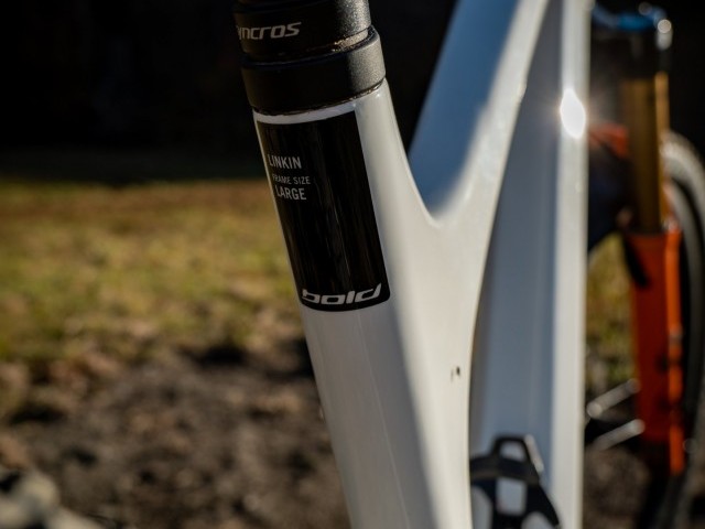 First thing you notice on the Linkin is the super short seat tube. Even on our L sized frame, it was only 425mm! Because there is no rear shock or pivot points on the seat tube, you can also insert the seatpost incredibly far into the frame. A 200mm dropper post slammed all the way into the frame is no problem for the Bold. Great news for smaller riders that struggle to get their feet on the ground!
