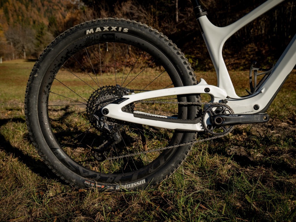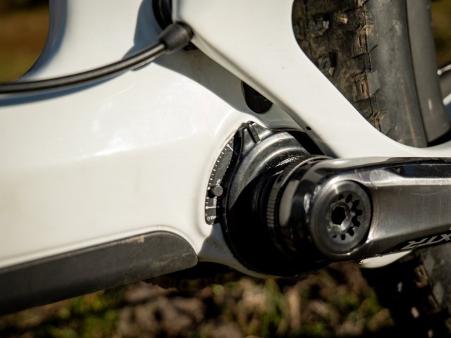 When purchasing the frameset, both links are included and when purchasing the complete bike, the link is sold separately. We didn’t have time to change a link ourselves, but it looks fairly straightforward to do. It does involve removing the cranks, so it’s not a job to do trailside.
