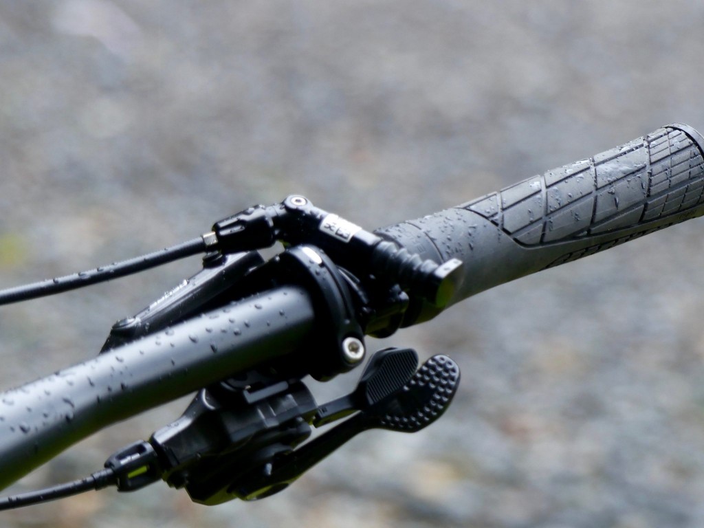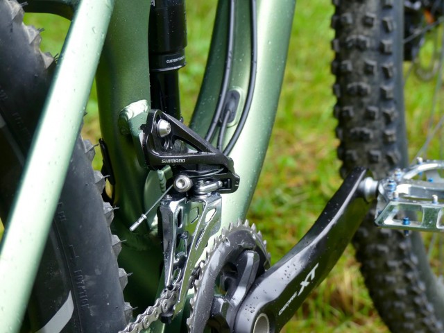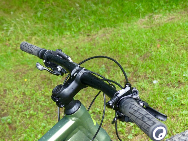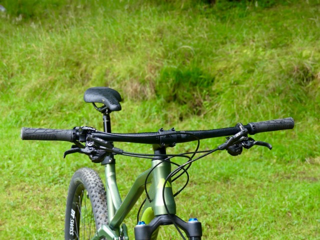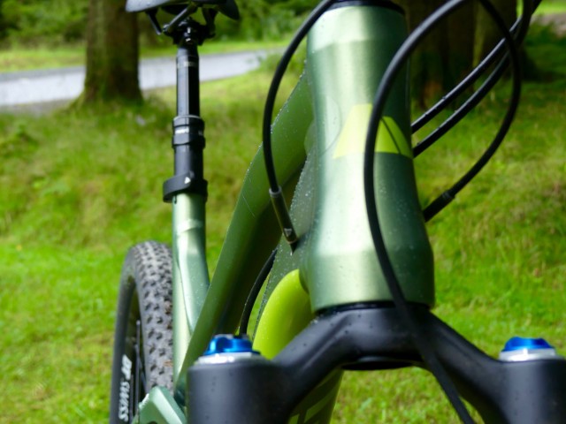 The riding position on the Neuron is very neutral and comfortable, suggesting long hours in the saddle would not be a problem. The front end feels high, the cockpit roomy but a little on the narrow side with 740mm bars. The stem isn't a barge, but neither is it super short, but that's fine on a bike such as this. The controls are all excellent, but the Reverb lever struggles to look at home with the Shimano shifters and brakes.