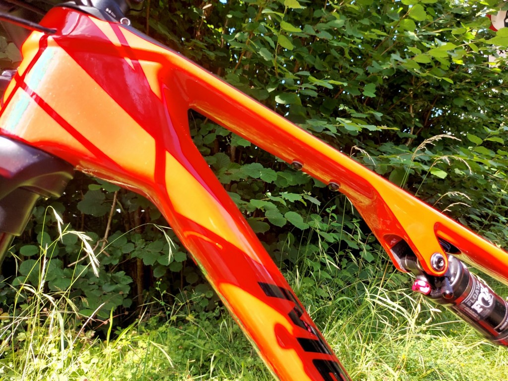 Kit wise the suspension is pretty basic Fox Performance, which in the shorter travel versions performs reasonably well.  The forks are the lightweight SC 32s and a Performance Elite Float does a job out back. Both are cabled to a Rock Shox grip shift on the left grip that locks and and unlocks both units simultaneously. Performance was adequate rather than inspiring.