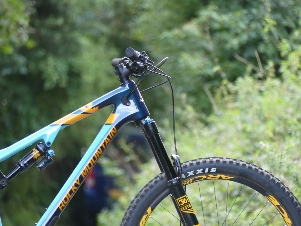 Finishing components come from Fox and RockShox, Shimano and SRAM. Our model is the Carbon 70, which boasts an eclectic mix of components including Fox Performance Elite suspension, SRAM Eagle drivetrain and Shimano XT brakes. RaceFace play a part with a 150mm Turbine dropper (essentially a Fox Transfer) post and some nice looking 30mm wide rims, which are laced to Rocky Mountains own brand Front hub and a DT Swiss rear hub. These Boost-size wheels are finished off with some meaty 2.5” Maxis tyres, a DHF upfront and an Aggressor at the rear. The Altitude will also be one of the few bikes in the world to feature Fox Live and is ready to receive that technology when it's ready.