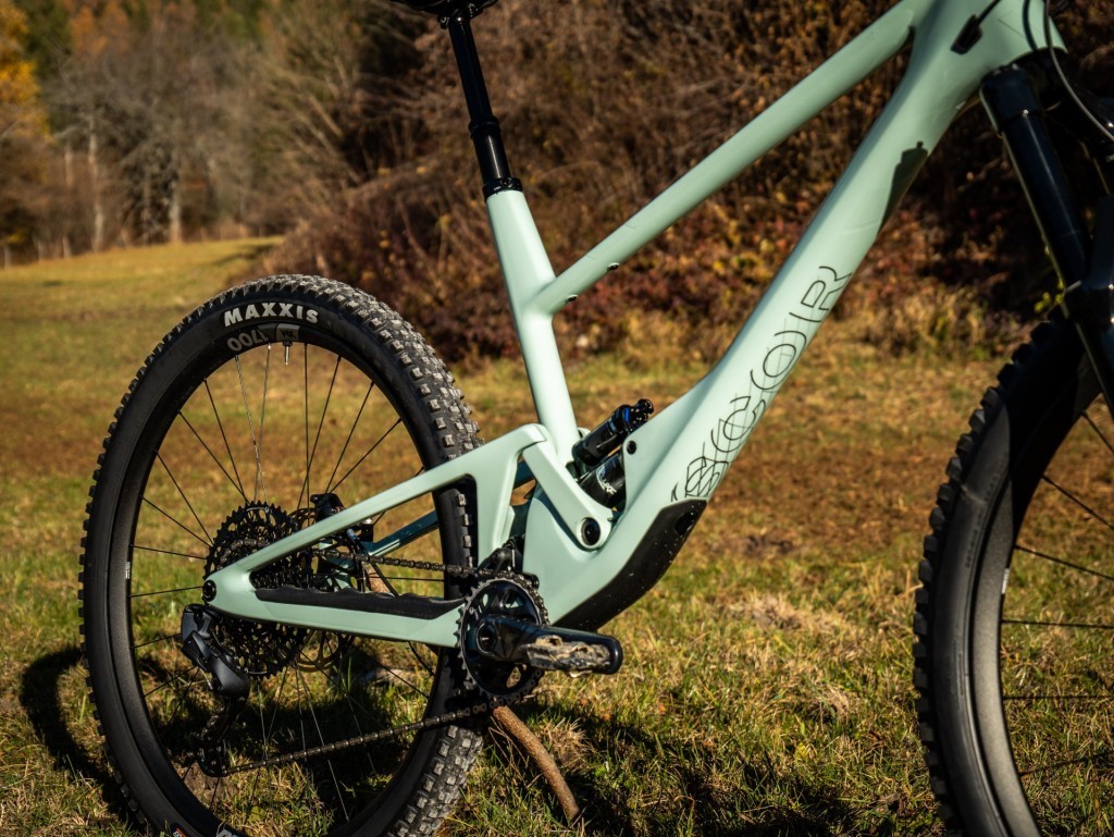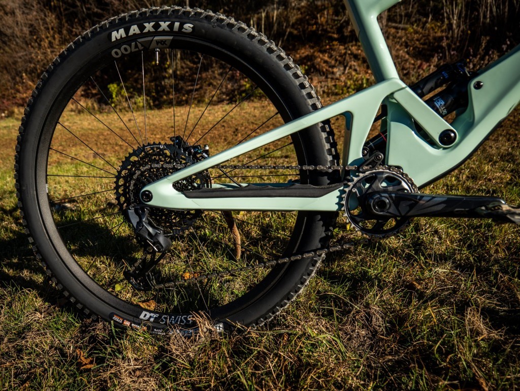 Drivetrain is obviously GX with CODE RSC installed to slow you down. SCOR carbon bars are held in place by a Burgtec stem. Dropper post is by Bikeyoke and of course the travel is dependent on the frame size. To keep things rolling SCOR relies on the faithful DT Swiss with their XM1700 wheels. Grip is provided to you in the form of Maxxis Assegai in the front with EXO casing, and the Dissector with EXO+ casing.