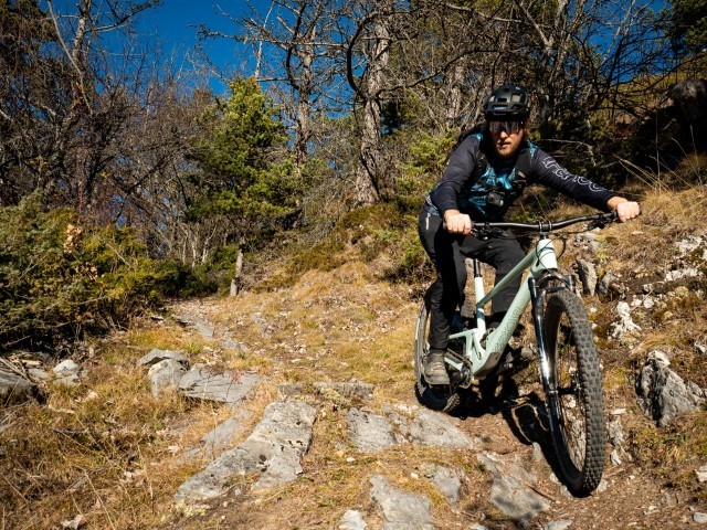 After trying out both options, we preferred the slacker head angle setup, as this gave you a bit more confidence on the steeps and at speed. Combined with the short rear end, it really creates a super playful feeling ride. Automatically you start to look for rocks and roots to launch from, and you pull a manual wherever you can.