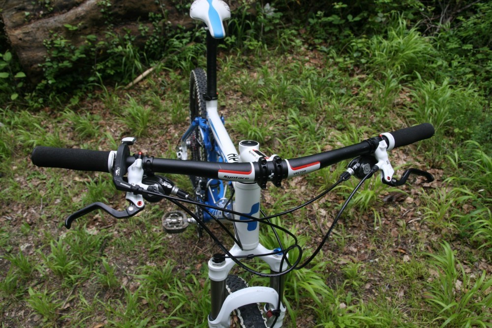 Cube has fitted a whooping 110mm Syntace stem and then contradicted themselves by fitting a set of 700mm wide lo rise bars, also from Syntace. Cube lightweight foam lock-on grips are shaped and are pretty comfortable.