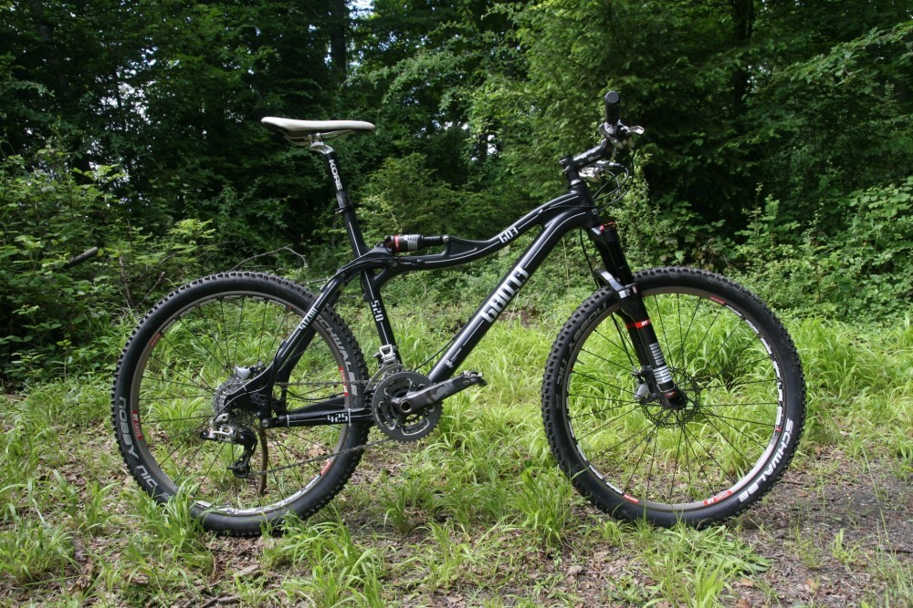 The PR6 is their 100mm full suspension race bike and it looks a little odd as the rear shock is mounted on top of the top tube which caused a couple of tester to question whether it was likely to affect their chances of fatherhood, this is not actually a problem as the top tube is heavily shaped to ensure that the shock is tucked well out of the way.
