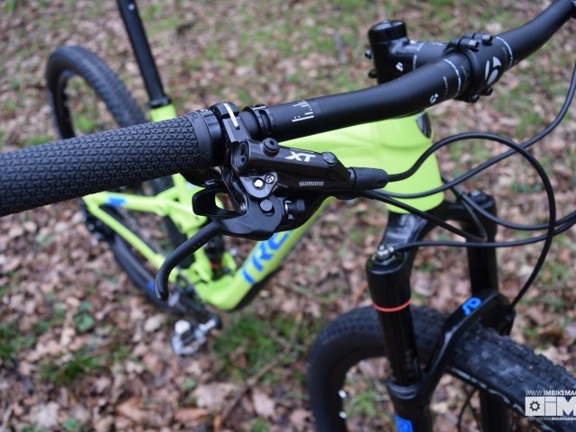 The drivetrain is one by eleven, nothing new here and it’s a setup that the majority of XC riders use now, offering a big spread on the 10-42 cassette. The stock chainring is 32 tooth which is a good “in the middle” range, if you're aiming to conquer long steep hills then you can slap a 30 on there in a few minutes as the crank doesn’t need to come off. I’ve found that I can get away with a 30 or 34 with no change in the chain length. The X1 shifter and mech are solid performers, just remember to keep the mech GT85’d after the wet rides and it won’t let you down. The XT brakes are ideal especially with the 180 rotor up front - certainly no issues there.