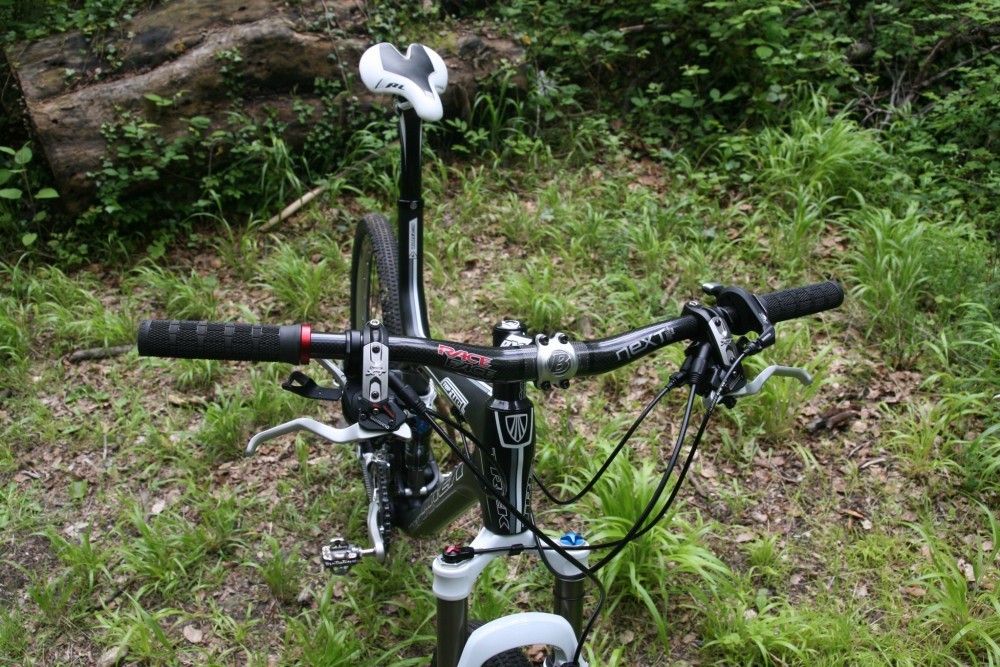 Drivetrain is XT throughout as are the brakes and the finishing kit includes Bontrager RXL 100mm stem which is mated to a beautiful Race Face Next SL bar that is a lo rise 660mm version.