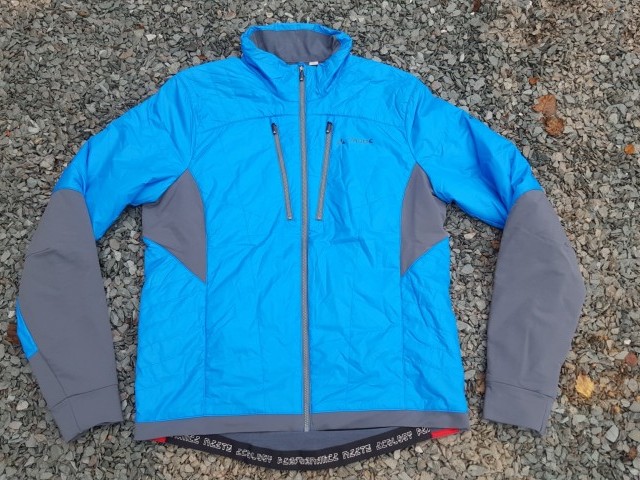 The Minaki jacket is a hybrid jacket which combines Primaloft insulation with water resistant stretch panels to deal with serious cold weather riding. It is ecologically manufactured under Vaude's 'Green Shape' label which guarantees environmentally friendly, sustainable products. Green Shape includes Blue Sign approved fabrics which are independently certified as being environmentally and socially sound as well as Vaudes' own Eco-Finish waterproofing. This jacket is aimed firmly at the environmentally conscious cold weather rider who want to get out no matter what the conditions. The light weight insulated jacket is cut specifically for cycling with water resistant stretch panels under the arms and down the back to give a close and comfortable fit