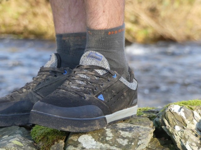 The achilles heel of flat shoes is that they’re often not up to the demands of wet weather and many a pair of good looking shoes have come un-stuck after a season of mud, water and repeated, intensive drying. While they were never intended to be waterproof they did manage to stay relatively dry through some pretty wet trails where standing water was a prevalent feature.