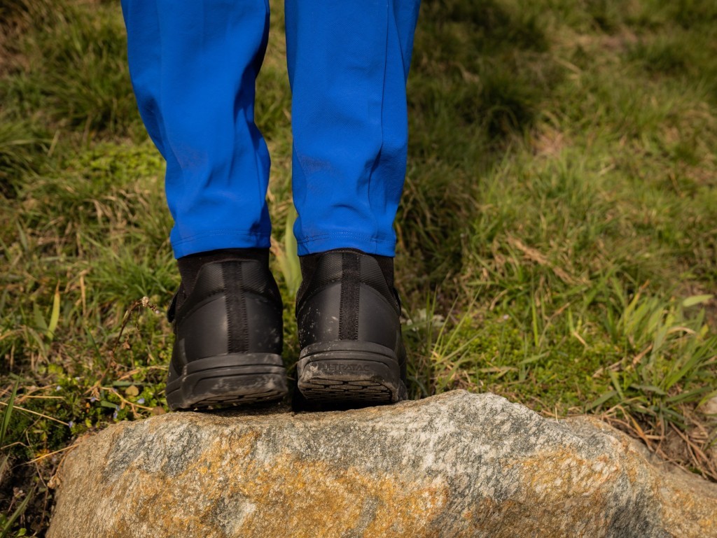 As they are on the stiffer side, they don’t do extremely well on long hike a bike sections. Also the sole itself is not super grippy. There is enough grip on dry and rocky ground, but when it's muddy and greasy, walking back for pictures is a bit tricky. The heel cup has a fantastic fit though, so I experienced zero heel lift or blisters. Because of the materials used, the shoes dry out overnight without any trouble. That’s great because who likes slipping their dry warm feet in cold wet shoes?