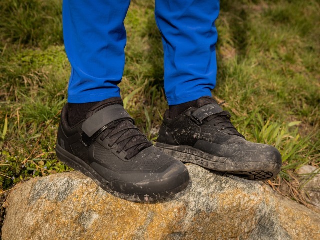 Fox’s venture into the shoe market is not without research, and it shows. The Union Clipless features a lace closure system combined with a velcro strap on top to really fine tune the fit to your foot.The upper material is a lightweight mesh, coated with a TPU skin for durability and protection from the elements. Perforations on the top and side of the foot give that airflow needed to prevent overheating.