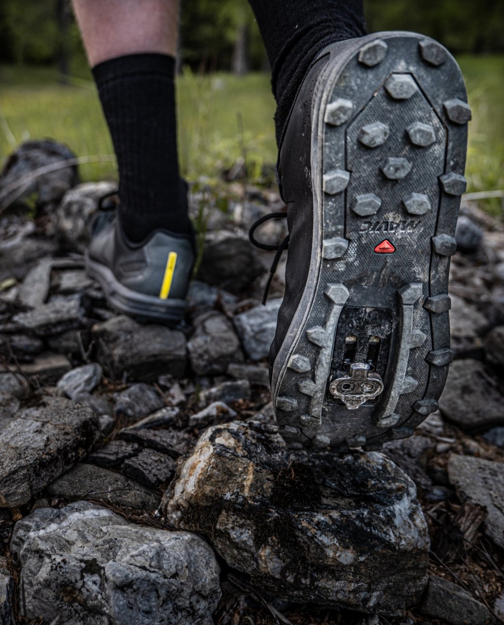 As their entry-level product the shoe is of course not packed with technology. The lacing system has no fancy Boa’s, straps or velcro, but there is an elastic band to tuck your laces under. The sole pattern offers a good amount of grip for those hike-a-bike sections and from a stiffness point of view it offers enough support for pedalling but is still flexible enough for longer hiking sections. The part of the sole that is covering the SPD cleat can be left in place in case you want to ride it with flat pedals. Their Ortholite insole offers good dampening and support, especially for its price category.
