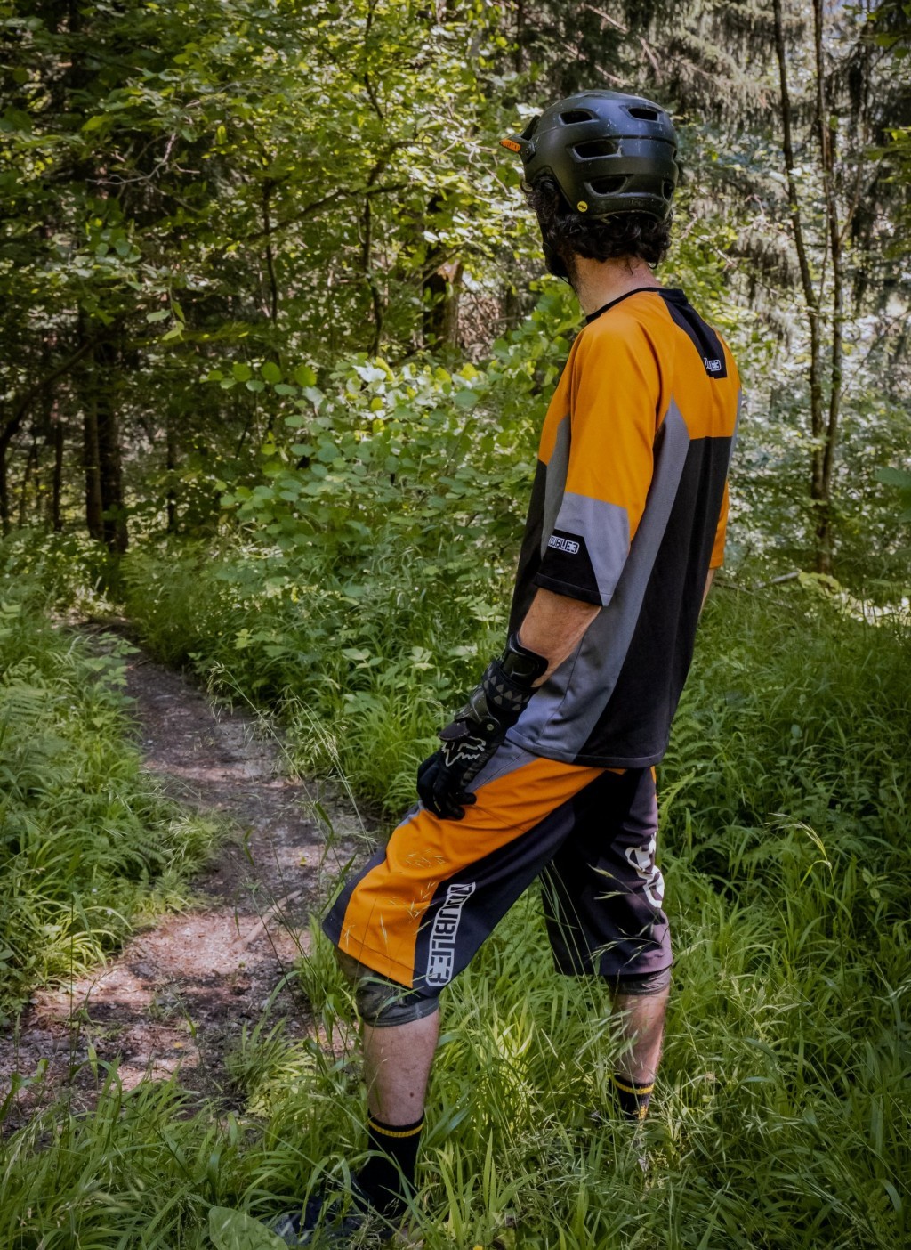 Out on the trail the robust feeling continues. The material of the shorts is a little warm for pedalling on the hottest days, but for lapping the park or those colder, showery days, the shorts in particular became a firm favourite. The water-resistant fabric isn’t going to keep you dry in a downpour, but for the occasional puddle and intermittent drizzle they’re perfect. Double3 claims this water-resistant finish can be rejuvenated with a hot iron, but after repeated washings it still seems to be as beading as well as when they came out the box so the theory remains untested.