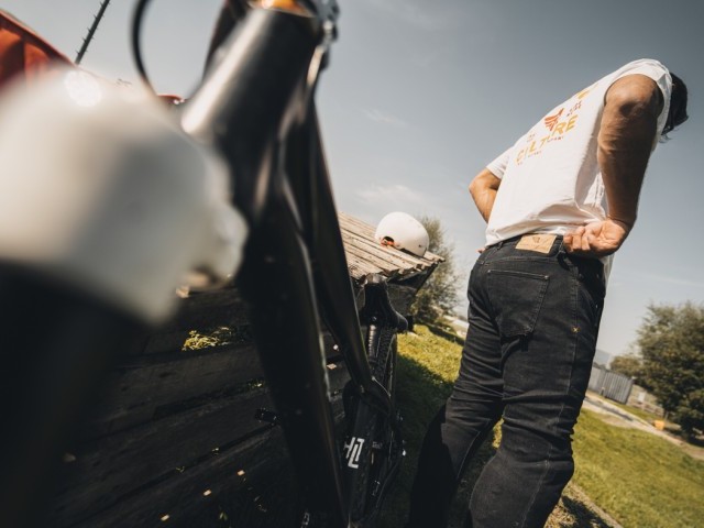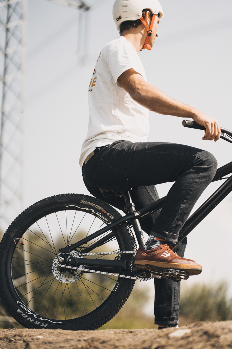 Riding in jeans is definitely something we only do at the dirt jumps or on the pumptrack, but after ruining multiple ‘regular’ pants it was time to try something new. The Huppi Pro is made with a special mix of yarn, incorporating Kevlar fibers and creating an extremely abrasion resistant yet flexible fabric. Another bonus is that they only use organic cotton for their products.