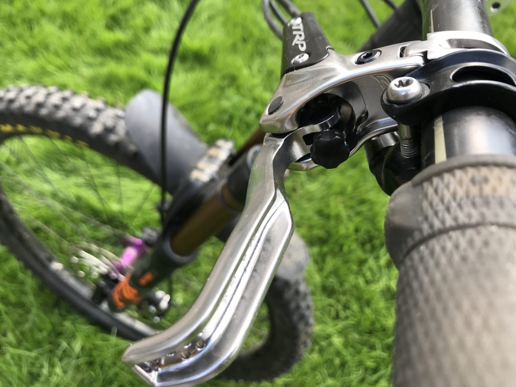 The levers are very moto-inspired, longer than average, with a pitted finger grip for added security in the slop. There is a nifty tool-free reach adjuster tucked away behind the lever to dial in the distance. It's not the easiest to get to with gloves on but is well protected and looks sleek. There is no bite point adjust, but this wasn’t an issue for me out of the box.