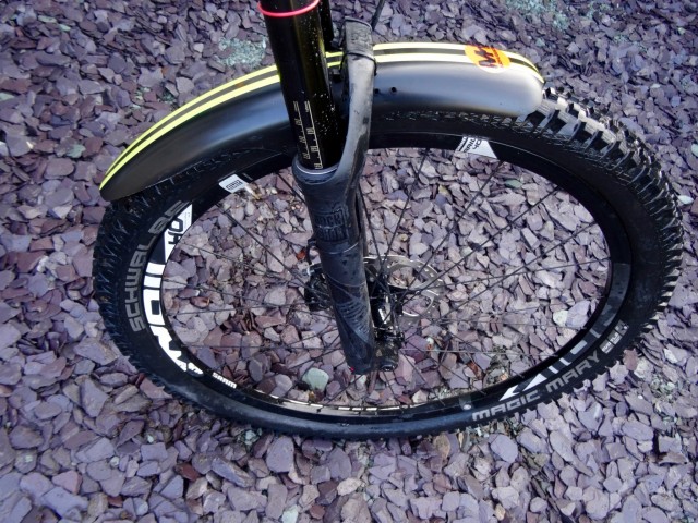 This version was tested on a 29er, and the spray reduction was definitely noticeable, as I went from running no mudguard to this, so finishing a ride with a relatively mud-free front, and glasses not fully plastered was great. It was a timely reminder that mudguards work, regardless of your opinion on their aesthetics. Having used a longer fender on 29 wheels, I did find more protection from the longer guard (as you would expect), and I felt this one could be a little longer for maximum muck gathering. This will always be a balance of fashion, and in this case its a great mix of style and function.
